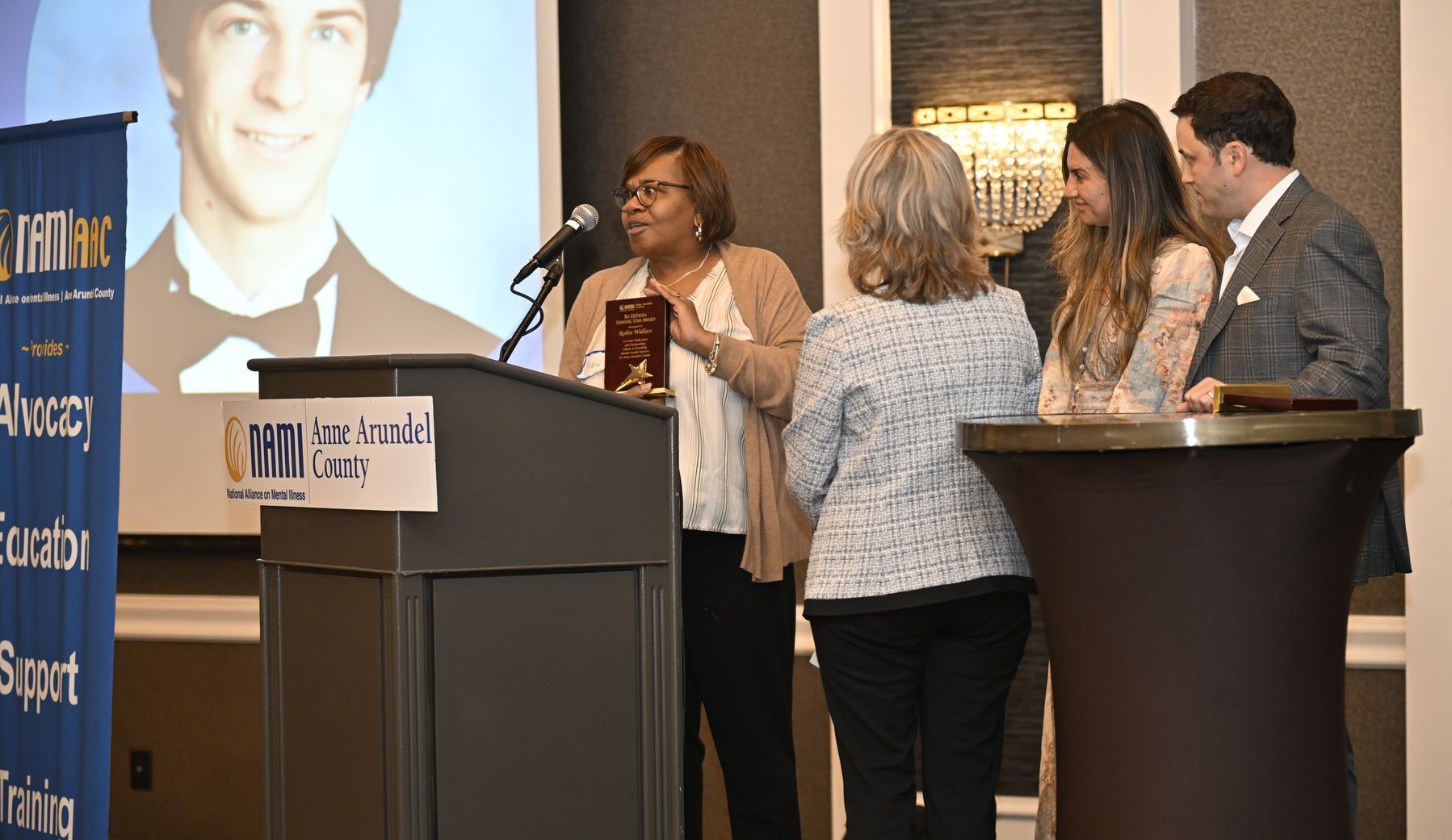 Robin Wallace with the Bo DePaola Shining Star Award at this year's NAMI AAC Gala.